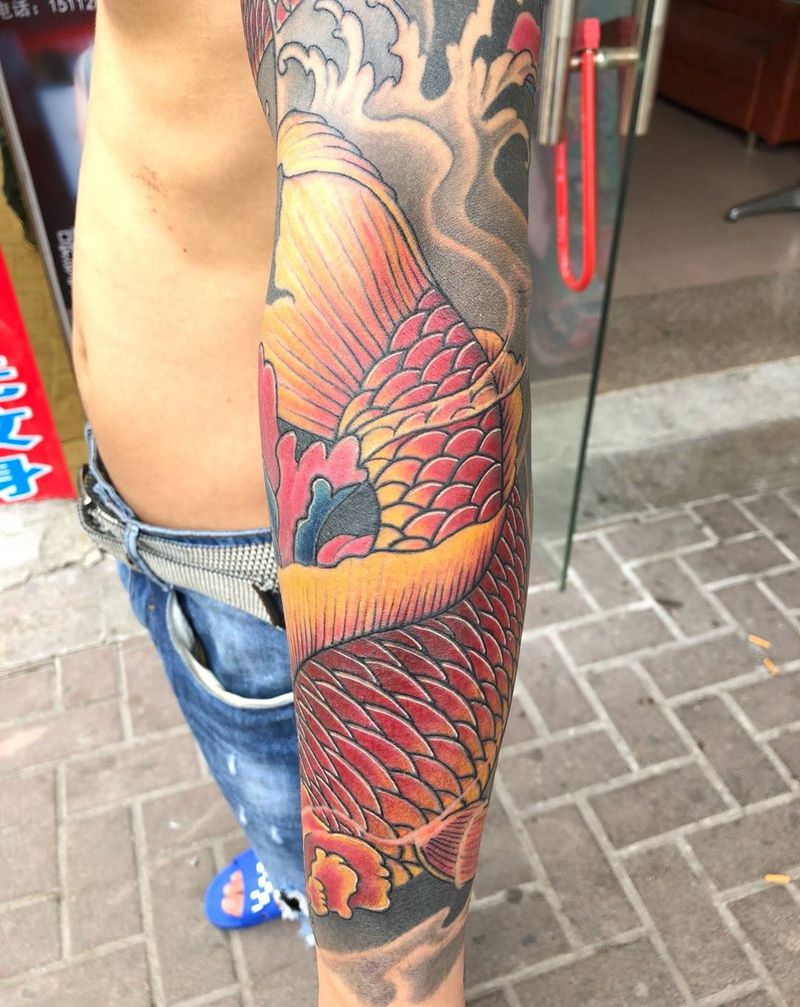 当前位置: 首页 >广东省东莞市纹身店-生龙堂刺青纹身图案>花臂鱼纹身图片_东莞生龙堂微信:15112866886学包会常年招生成品手臂传统动物纹身图案