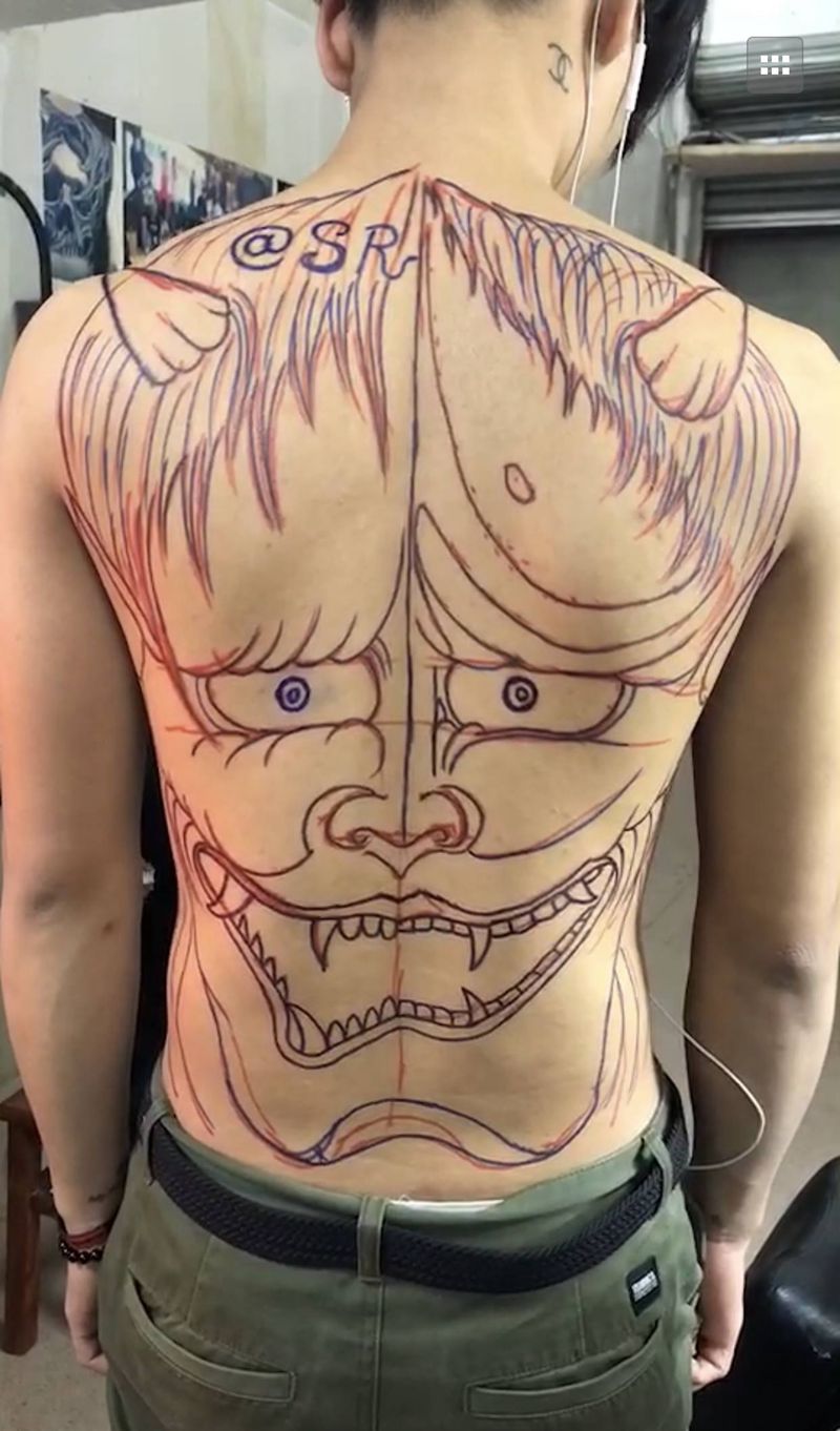 黑灰满背纹身图案