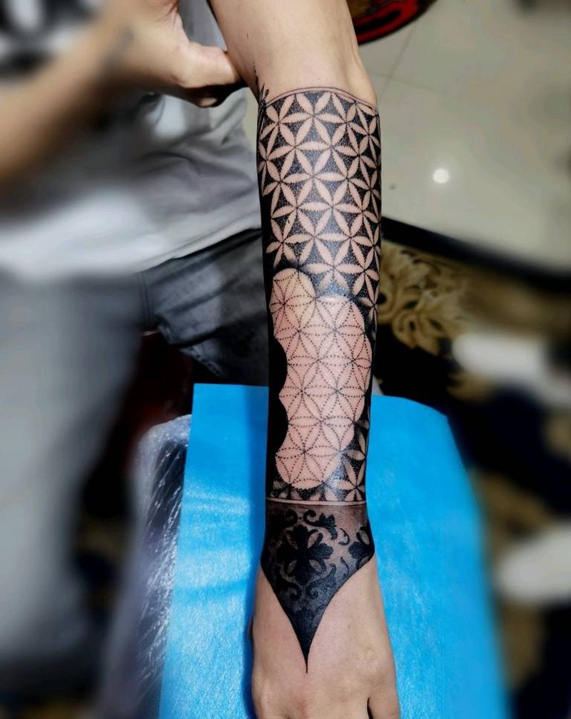 黑臂盖旧图纹身图片_手臂图腾点刺纹身图案