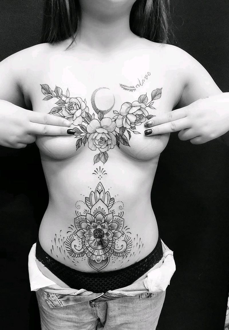 胸花点刺纹身图片_胸部腹部点刺纹身图案