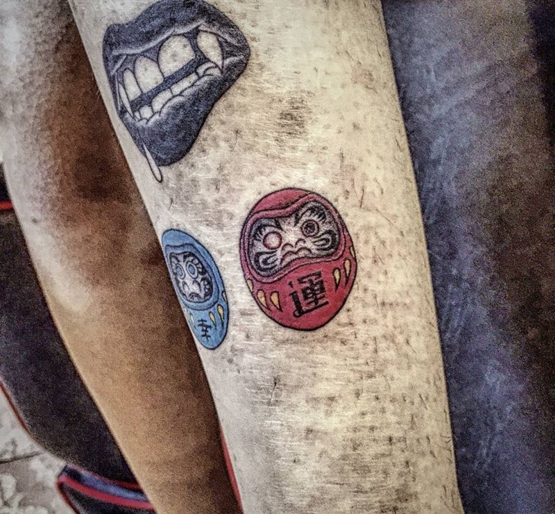 • T包小腿吹火男+阿多福纹身图片_腿部老传统新传统吹火男阿
