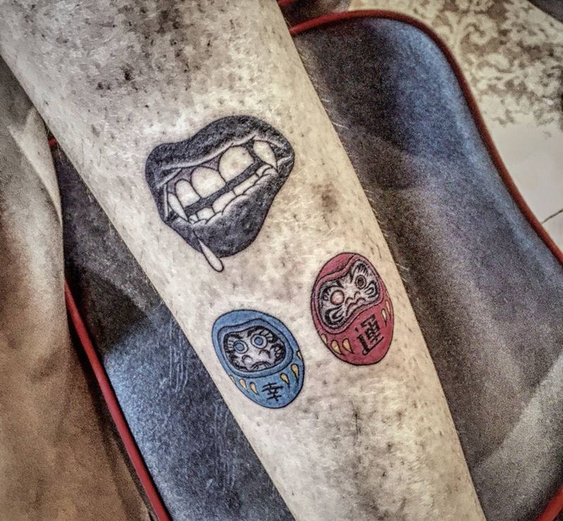 • T包小腿吹火男+阿多福纹身图片_腿部老传统新传统吹火男阿