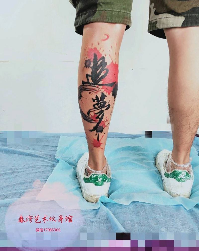 • T网红王老大花腿龙纹身图片_腿部新传统纹身图案