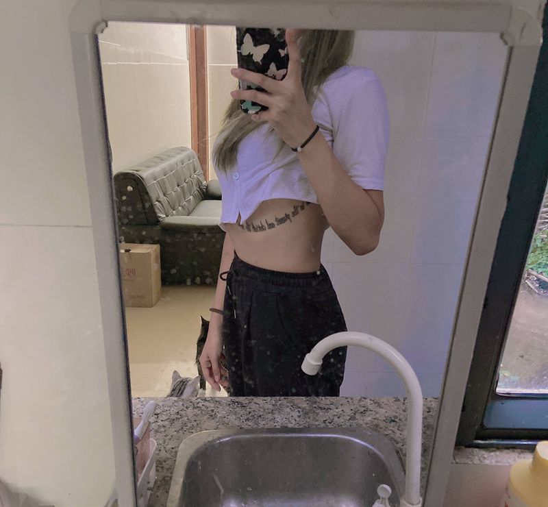 • T关于私处得爱!纹身图片_成品腹部清新字符图腾纹身图案