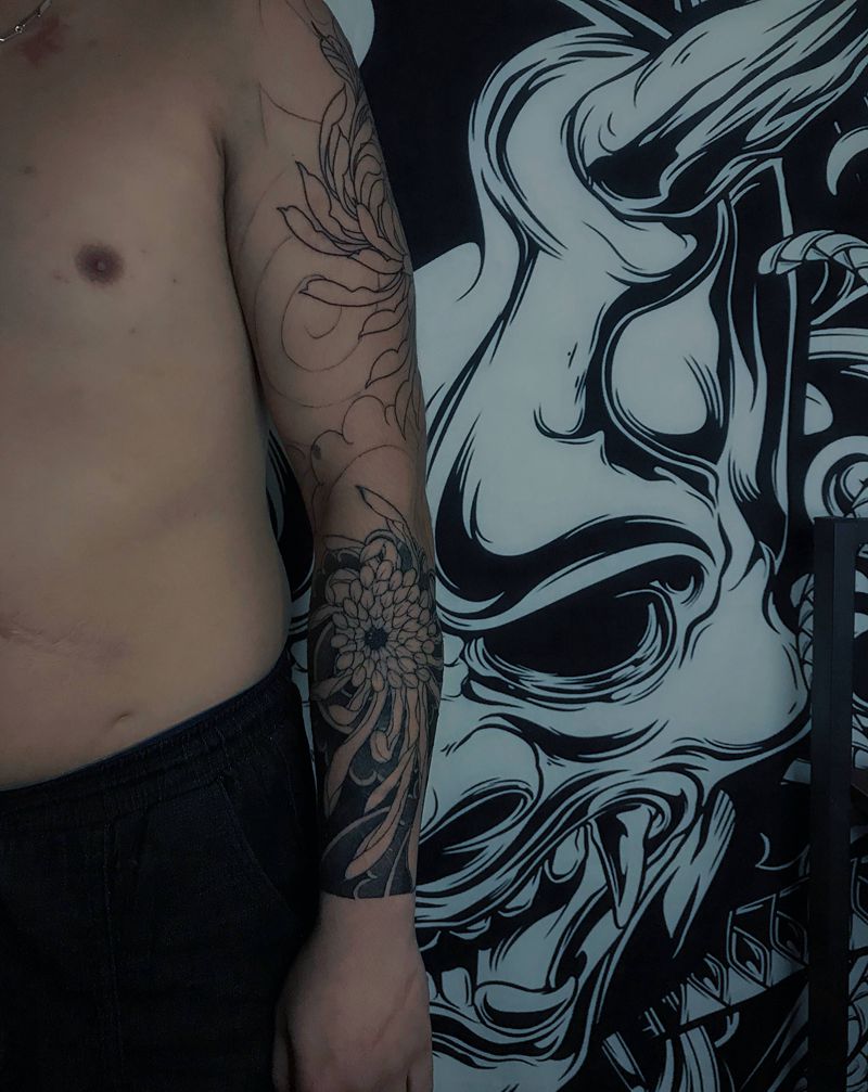 当前位置: 首页 >广东省东莞市纹身店-刺青堂纹身纹身图案>日式花臂纹身图片_手部手臂老传统纹身图案