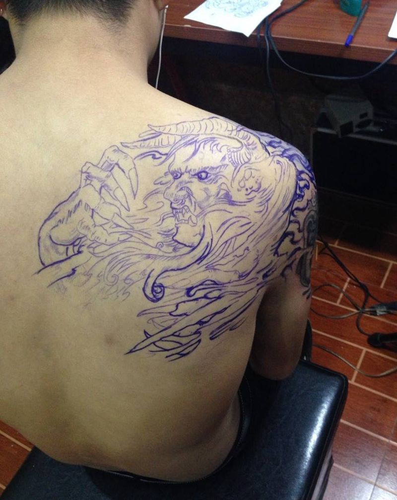 • 纹身吧推荐的披肩图腾半胛纹身图案作品展示