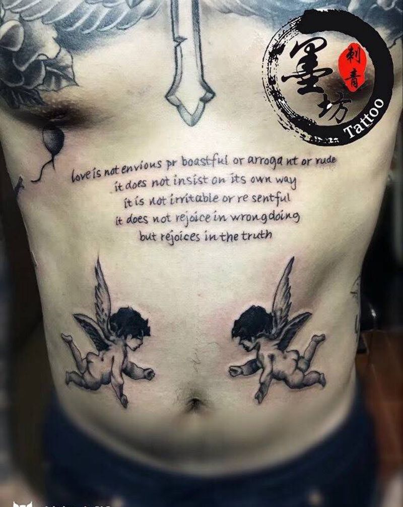 • T关于私处得爱!纹身图片_成品腹部清新字符图腾纹身图案