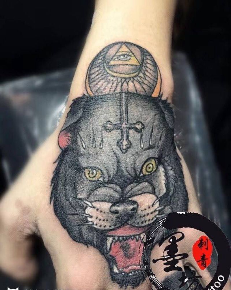 欧美school纹身图片_成品手部欧美动物纹身图案
