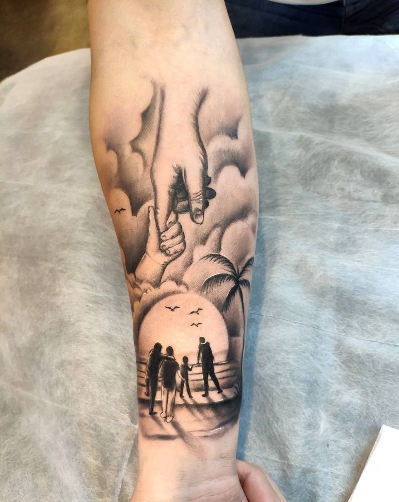 家庭主题 时光里纹身图片_手臂欧美写实纹身图案