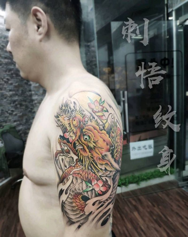 当前位置: 首页 >广东省东莞市纹身店-刺悟纹身工作室纹身图案>大臂龙纹身图片