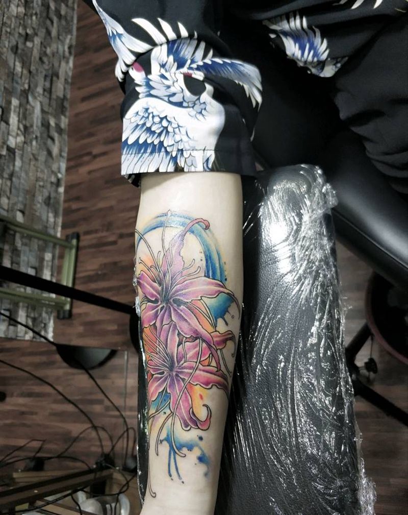 当前位置: 首页 >广东省东莞市纹身店-刺悟纹身工作室纹身图案>水彩彼岸花纹身图片_手臂水彩水墨纹身图案