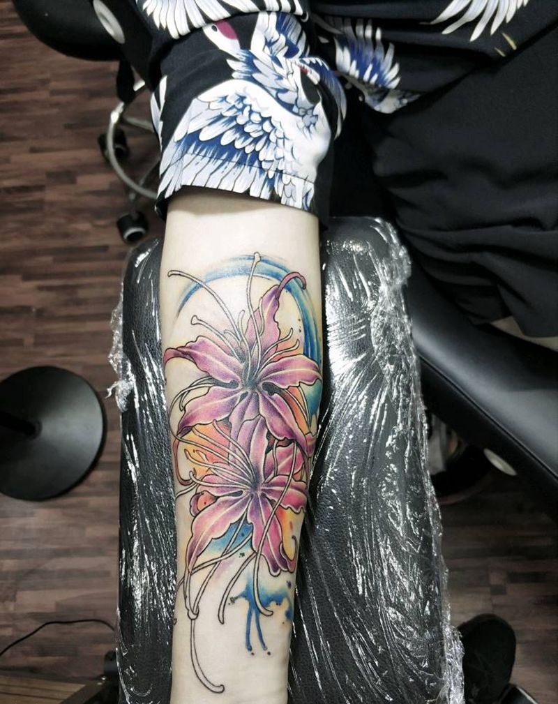 水彩彼岸花纹身图片_手臂水彩水墨纹身图案
