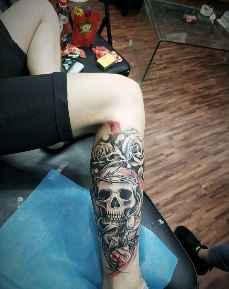 • T网红王老大花腿龙纹身图片_腿部新传统纹身图案