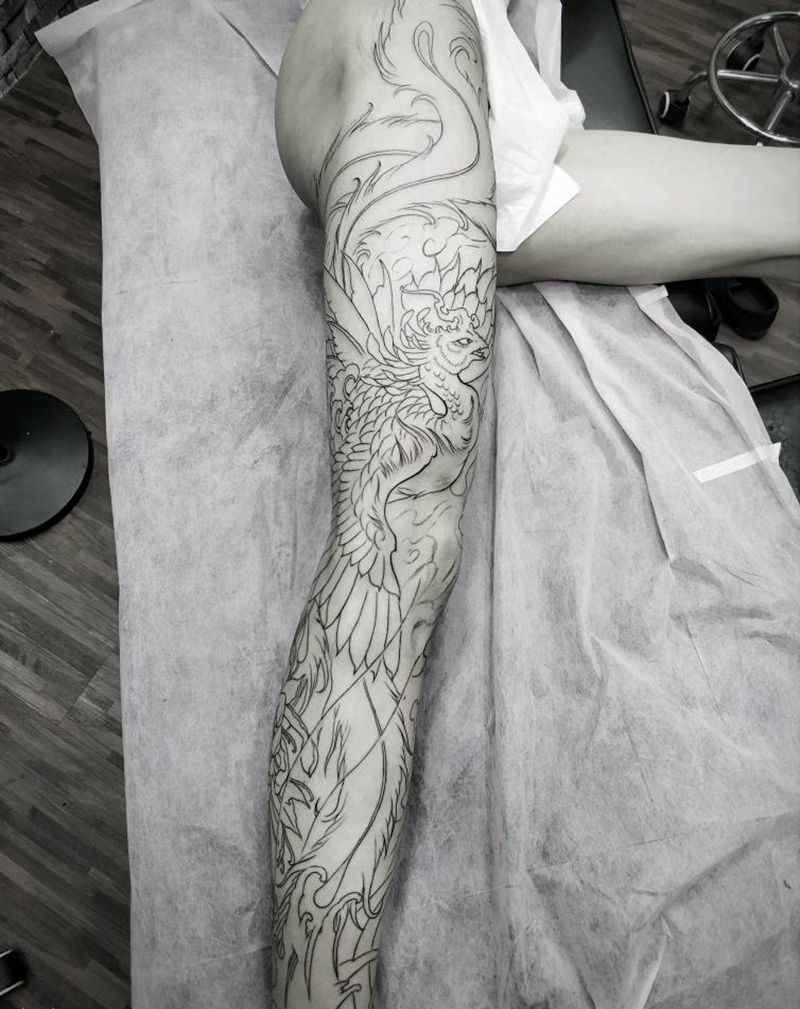 当前位置: 首页 >广东省东莞市纹身店-刺悟纹身工作室纹身图案>凤凰花腿走线纹身图片_腿部新传统纹身图案