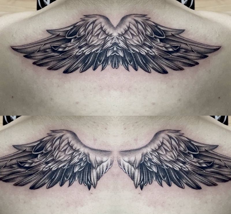 小翅膀纹身图片_颈部欧美写实Old School纹身图案