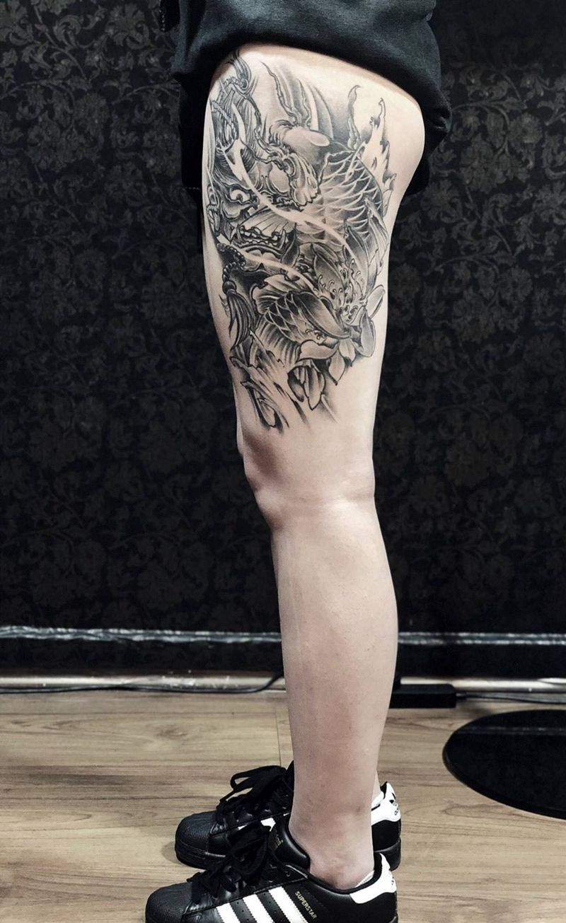 黑灰满背纹身图案