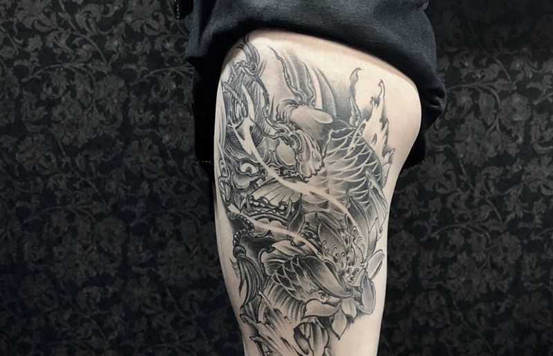 黑灰满背纹身图案
