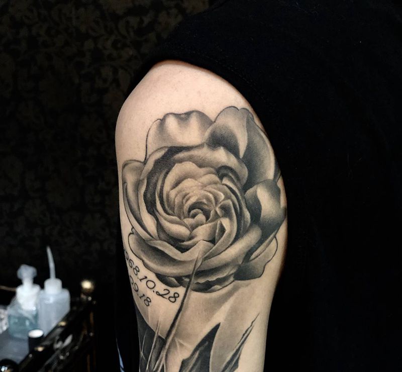 当前位置: 首页 >广东省东莞市纹身店-三木刺青纹身图案>栀子花纹身图片_手臂欧美写实黑灰纹身图案