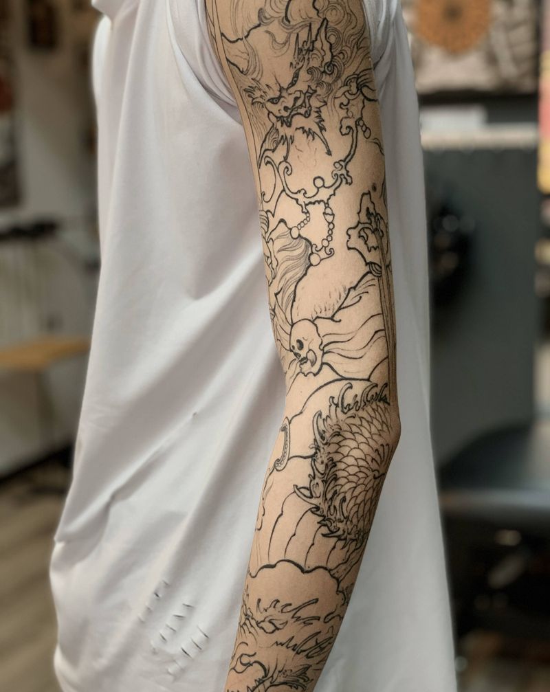 当前位置: 首页 >广东省东莞市纹身店-三木刺青纹身图案>线条纹身图片_手臂新传统纹身图案
