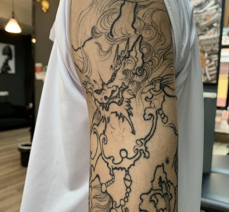 当前位置: 首页 >广东省东莞市纹身店-三木刺青纹身图案>线条纹身图片_手臂新传统纹身图案