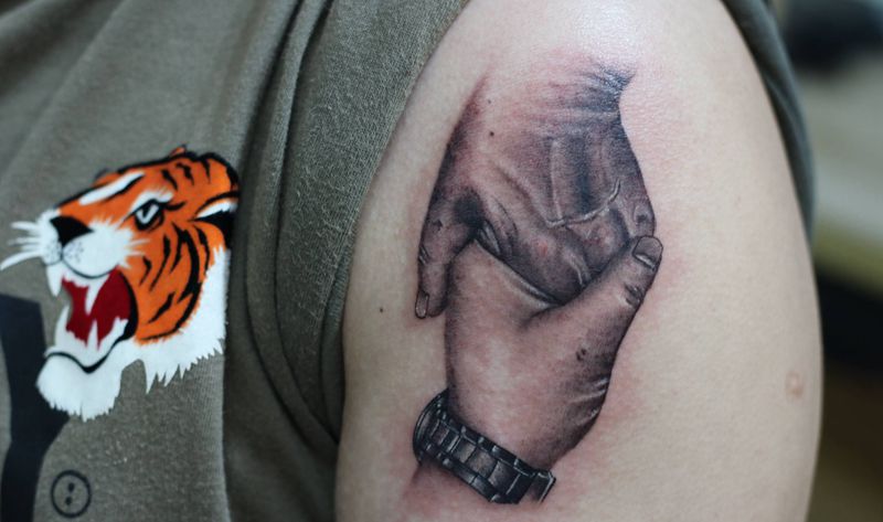 当前位置: 首页 >广东省东莞市纹身店-广东紋憶刺青纹身图案>握着爷爷的手纹身图片_手臂纹身图案