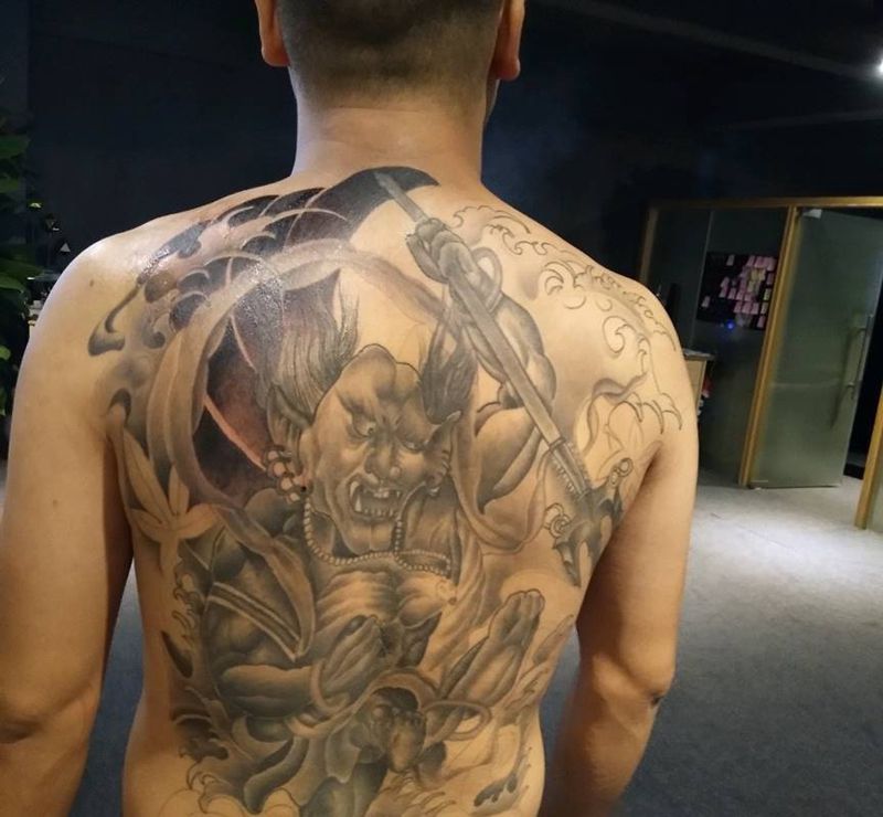 • 黑灰满背纹身图案
