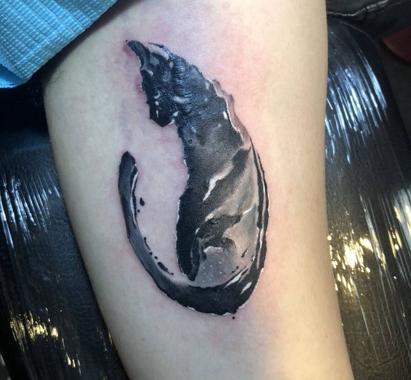 猫纹身图片_手臂水墨纹身图案