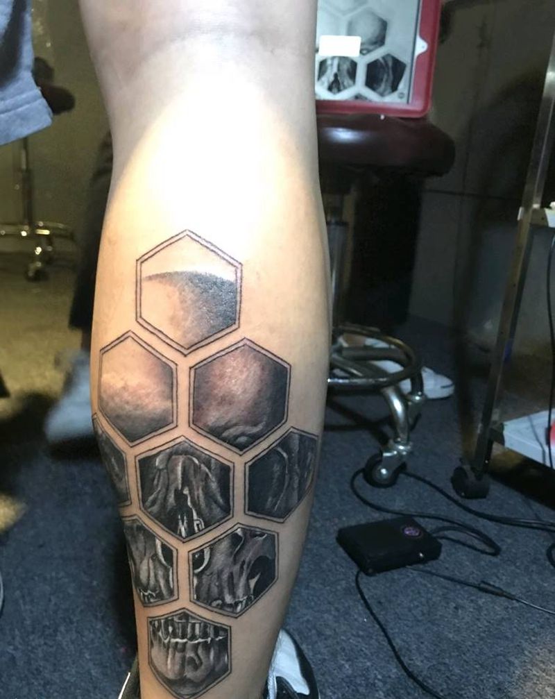 • T网红王老大花腿龙纹身图片_腿部新传统纹身图案