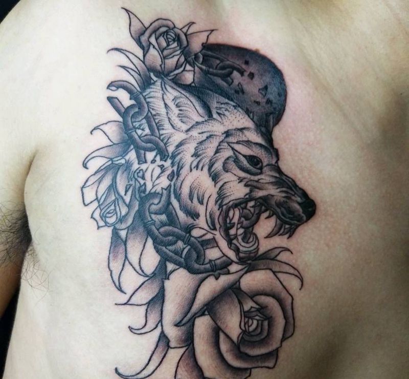 当前位置: 首页 >广东省东莞市纹身店-广东紋憶刺青纹身图案>狼头,玫瑰纹身图片