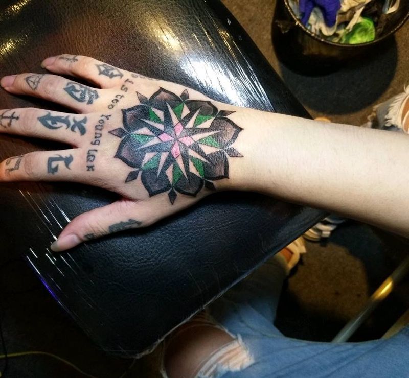 • 手背潮流时尚的玫瑰花眼睛纹身图案