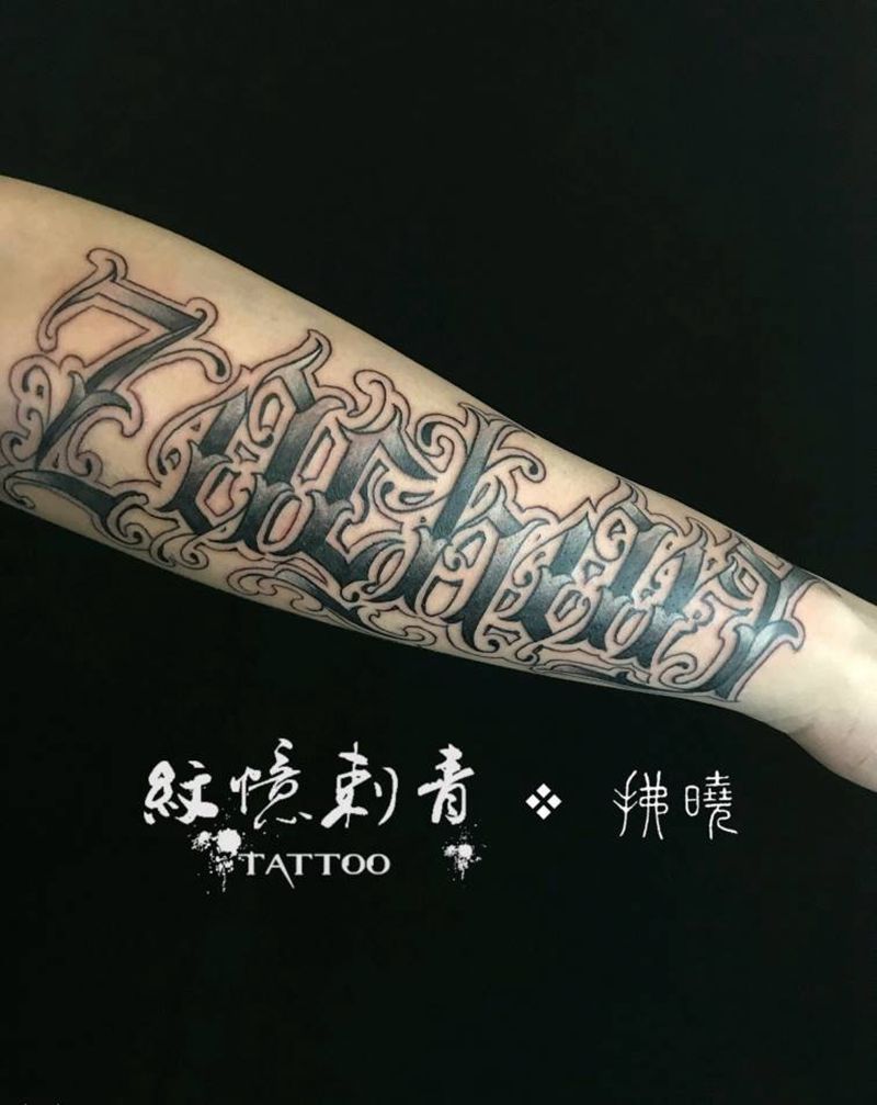 当前位置: 首页 >广东省东莞市纹身店-广东紋憶刺青纹身图案>手臂花体纹身图片