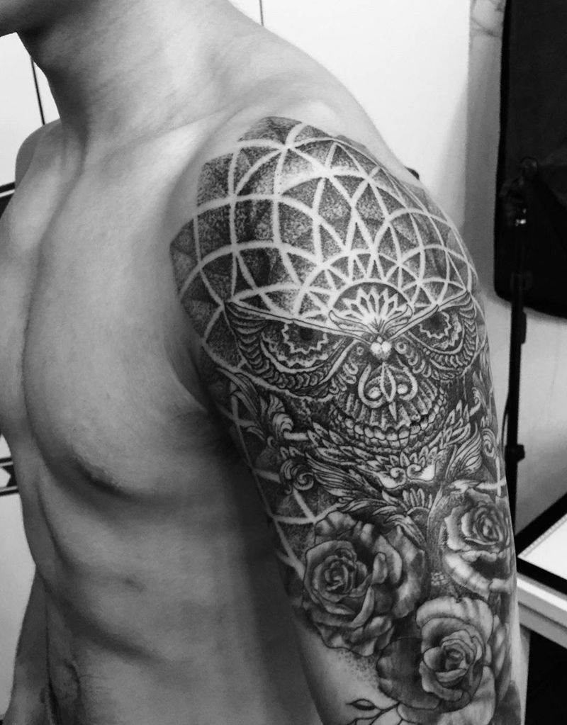 • 纹身吧推荐的披肩图腾半胛纹身图案作品展示