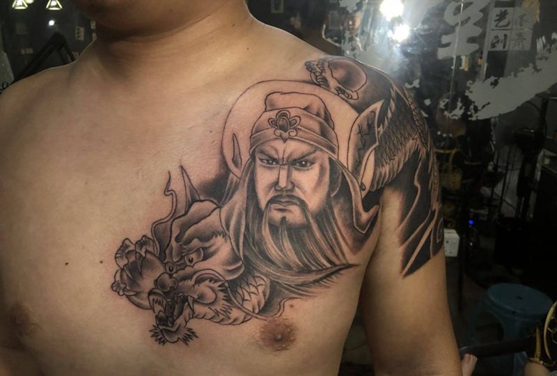 关公纹身图片_胸部手臂老传统新传统纹身图案