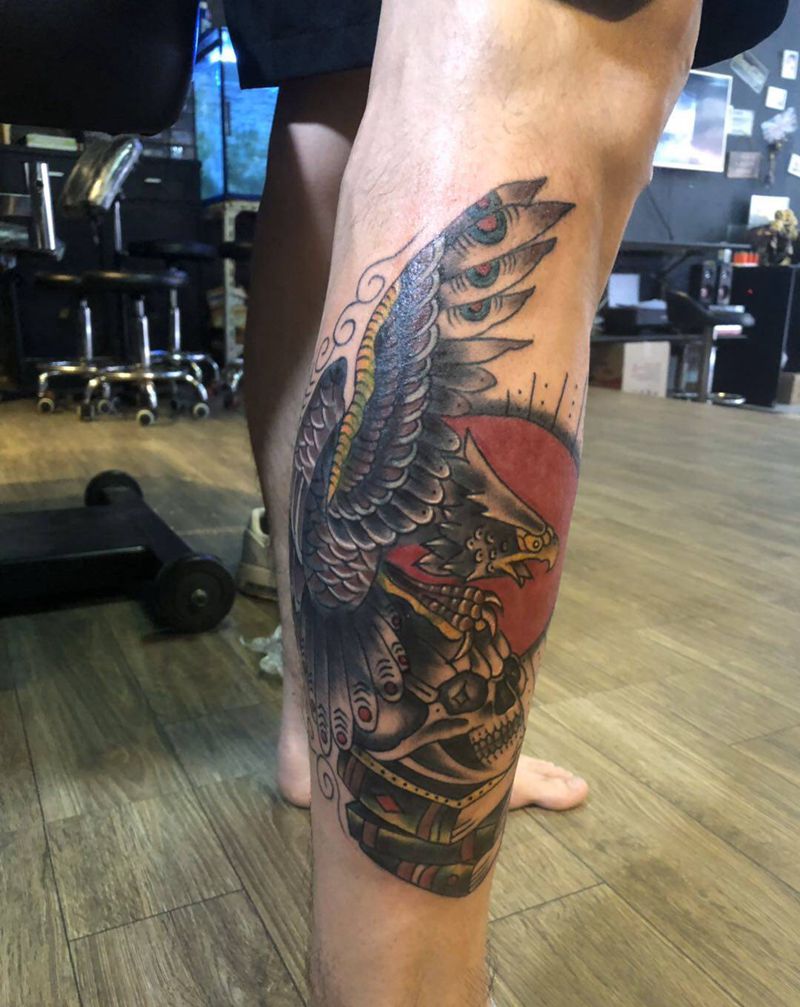 • T网红王老大花腿龙纹身图片_腿部新传统纹身图案