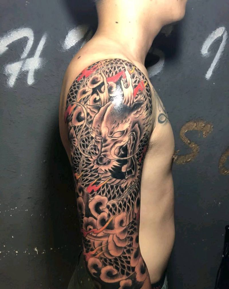 • T网红王老大花腿龙纹身图片_腿部新传统纹身图案