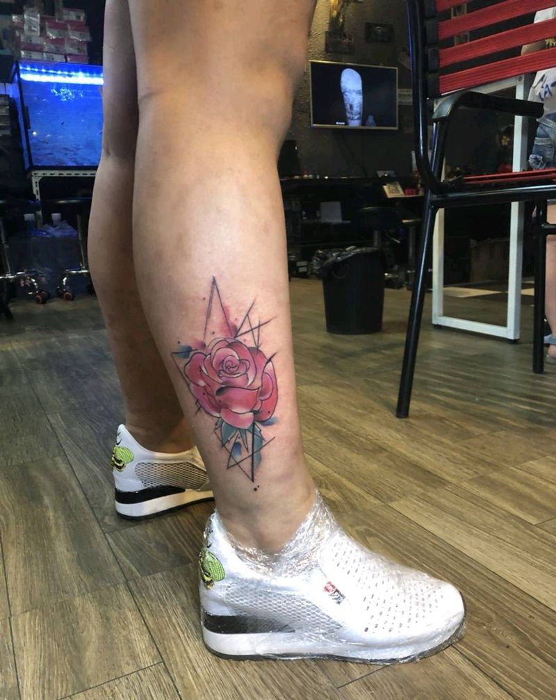 • T网红王老大花腿龙纹身图片_腿部新传统纹身图案