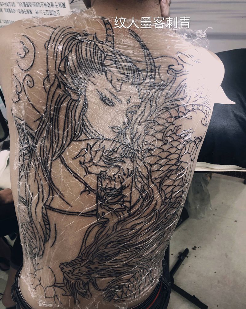 当前位置: 首页 >广东省东莞市纹身店-纹人墨客纹身工作室纹身图案>龙女线条满背纹身图片_背部新传统纹身图案