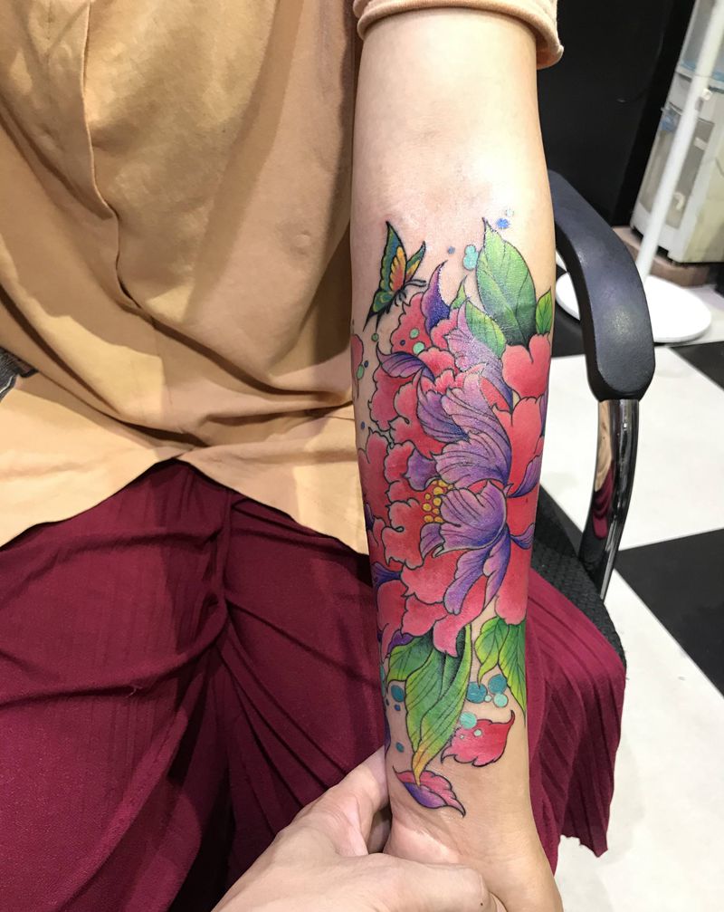 当前位置: 首页 >广东省中山市纹身店-艺龙刺青(东凤总店)纹身图案>盖旧纹身与疤的小花纹身图片_手臂新传统纹身图案