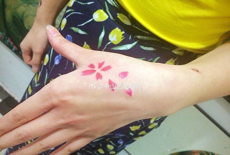 • 手背潮流时尚的玫瑰花眼睛纹身图案