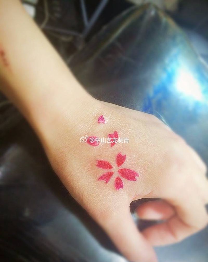• 手背潮流时尚的玫瑰花眼睛纹身图案