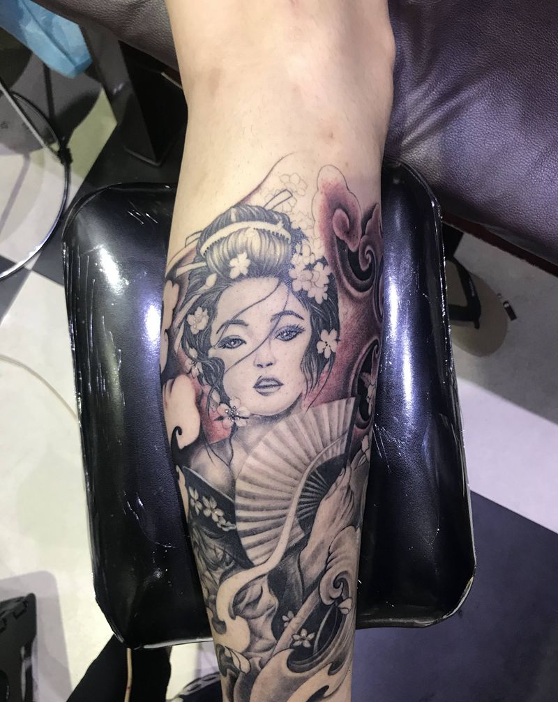 艺妓纹身图片_腿部纹身图案