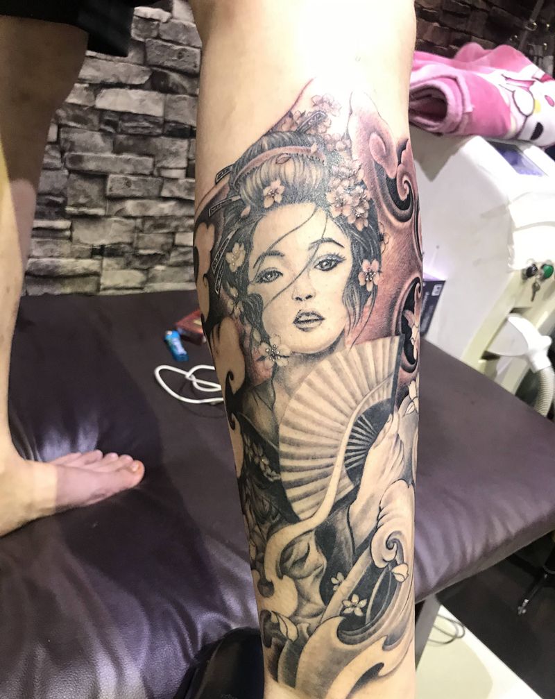 艺妓纹身图片_腿部纹身图案