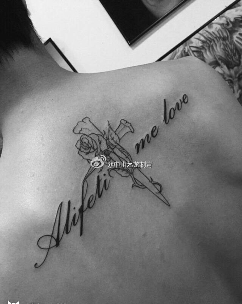 当前位置: 首页 >广东省中山市纹身店-艺龙刺青(东凤总店)纹身图案>“十字架混搭英文”纹身图片_成品手稿肩部背部欧美清新字符植物原创纹身图案