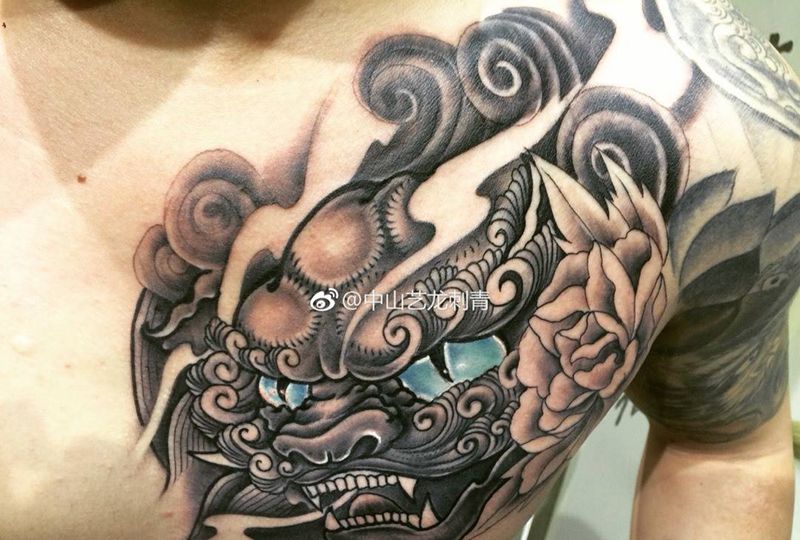 当前位置: 首页 >广东省中山市纹身店-艺龙刺青(东凤总店)纹身图案>传统:唐狮纹身图片_成品胸部传统鬼神原创纹身图案