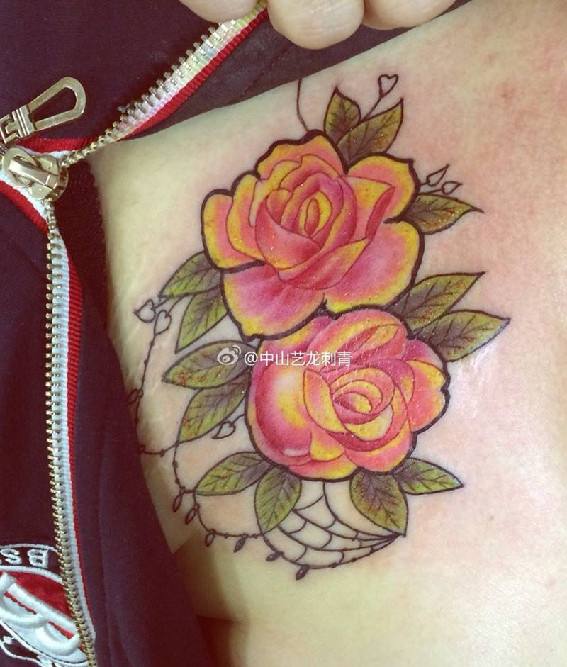 • 女性大花胸纹身_43张霸气漂亮的女性大花胸纹身图案作品