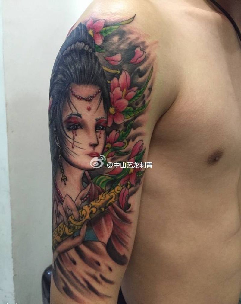 艺妓~纹身图片_成品手稿手臂传统人物纹身图案
