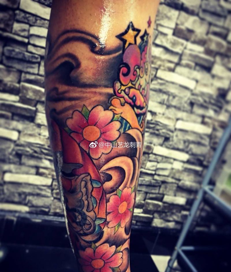 • T网红王老大花腿龙纹身图片_腿部新传统纹身图案