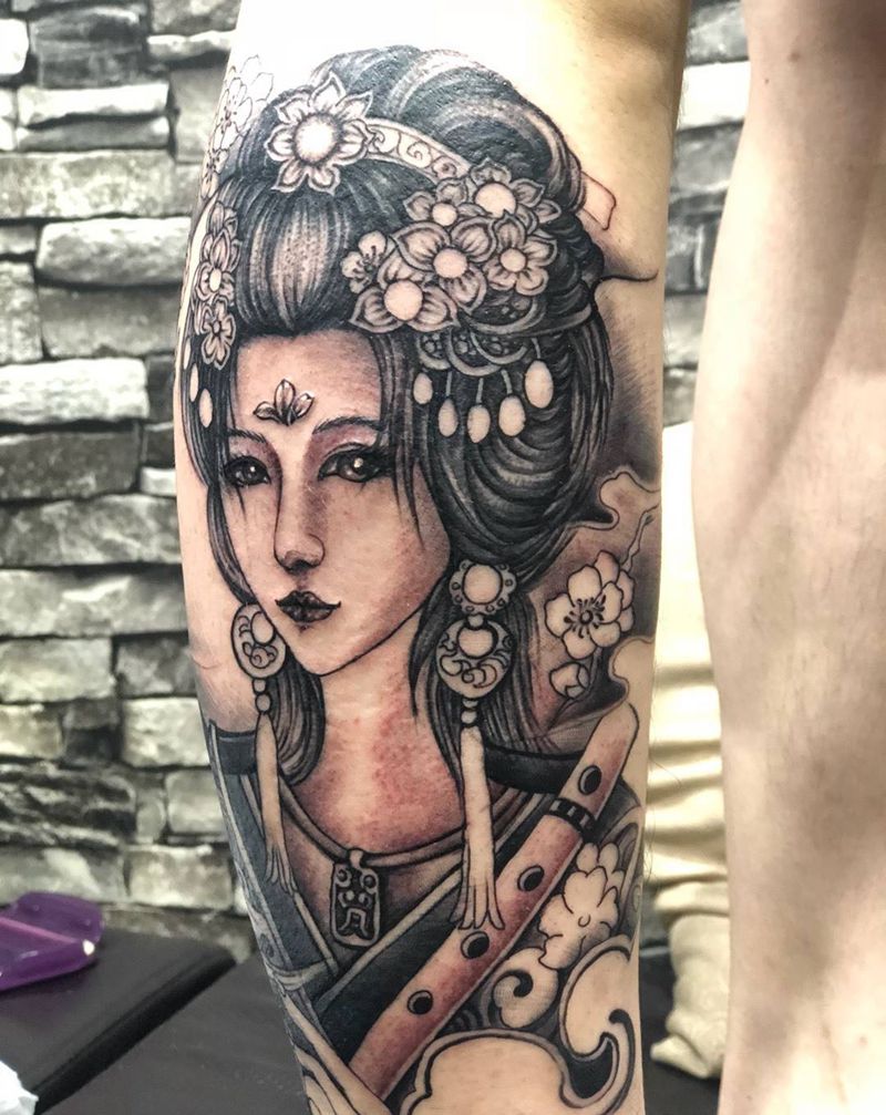 当前位置: 首页 >广东省中山市纹身店-艺龙刺青(东凤总店)纹身图案>艺妓纹身图片_成品腿部人物纹身图案