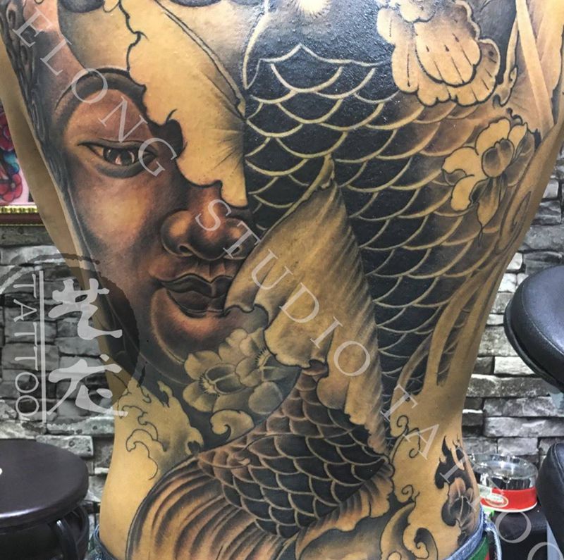 当前位置: 首页 >广东省中山市纹身店-艺龙刺青(东凤总店)纹身图案>佛与鱼纹身图片_成品背部传统鬼神纹身图案