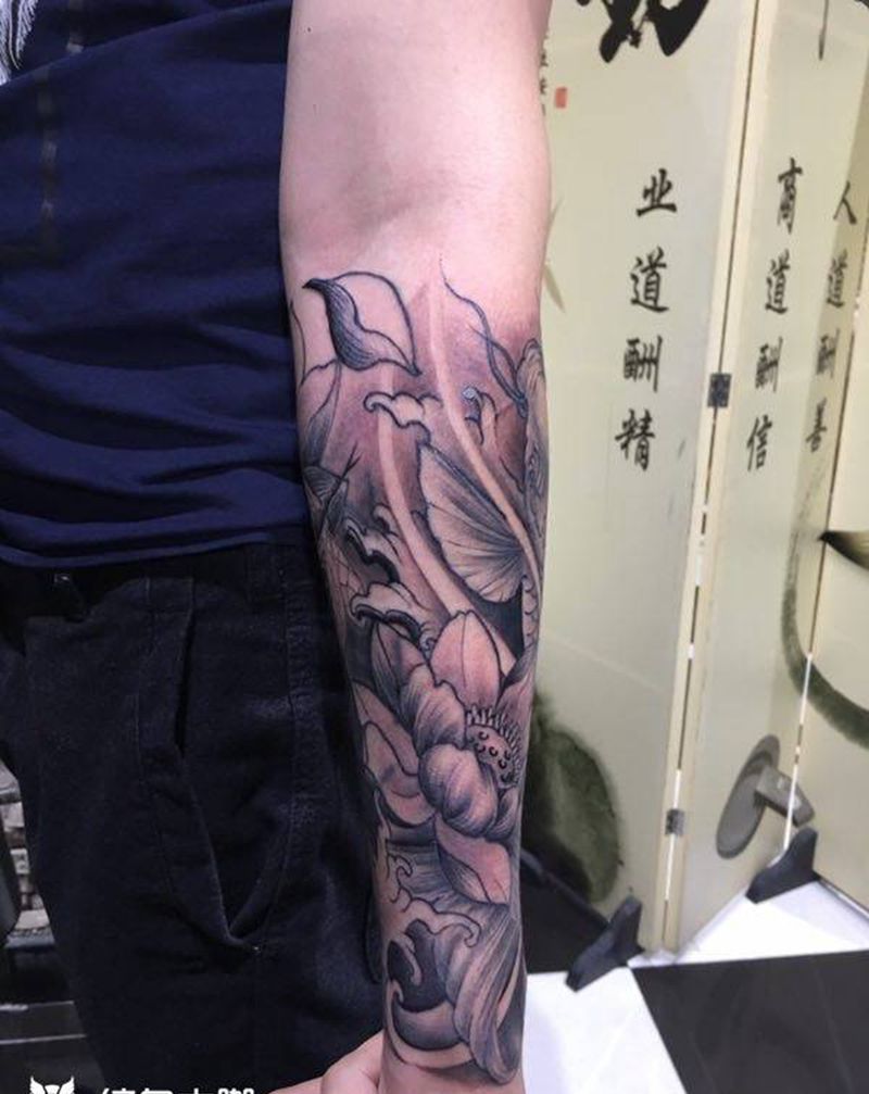 当前位置: 首页 >广东省中山市纹身店-艺龙刺青(东凤总店)纹身图案>荷花鲤鱼纹身图片_成品手臂传统动物植物纹身图案